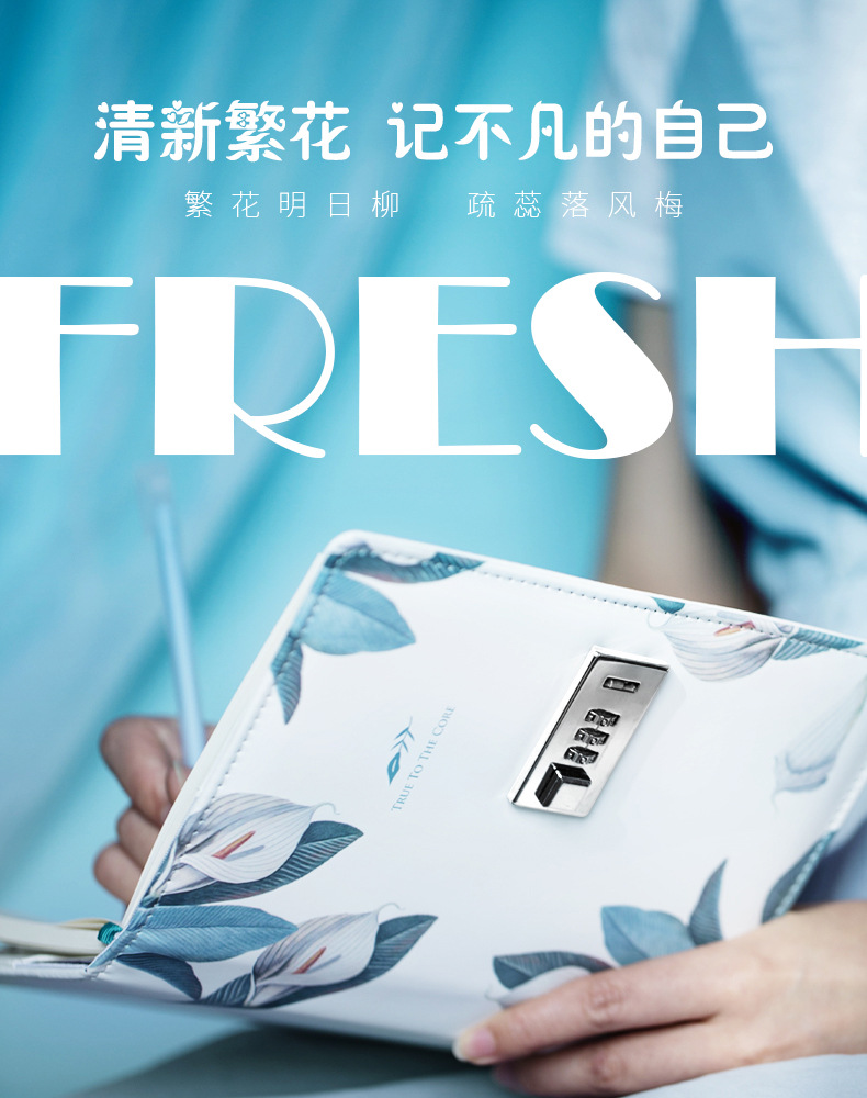 清新繁花系列·纯白说密码本 小清新皮面手账本 创意商务办公礼品