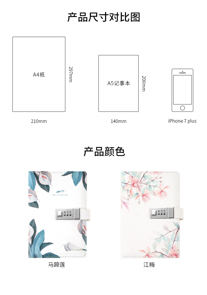 商品名称:清新繁花系列·纯白说密码本 小清新皮面手账本 创意商务办公礼品