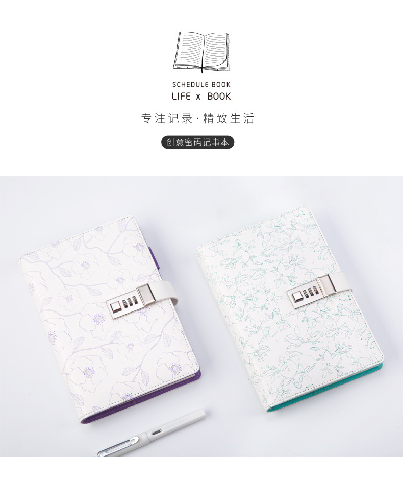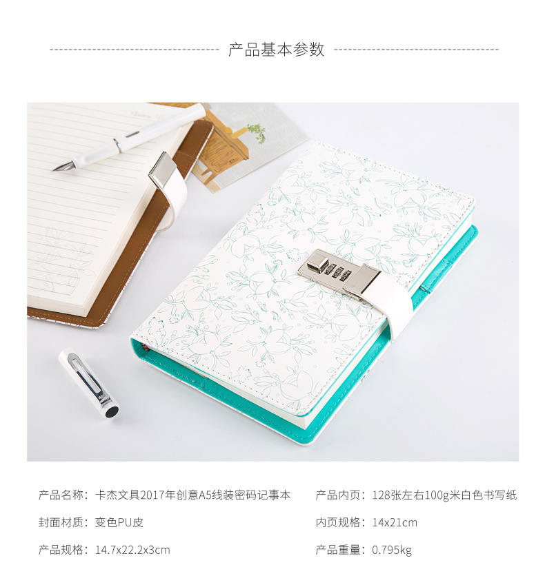 商品名称:花花系列线装密码记事本 A5皮质手账本 创意商务办公礼品