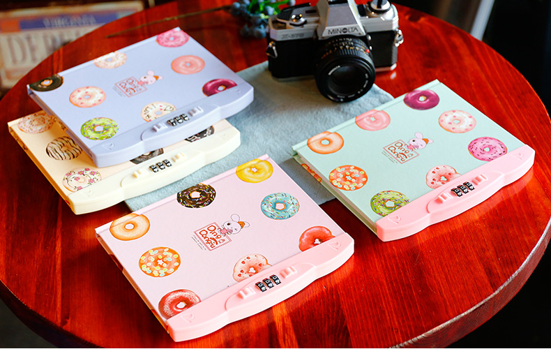 商品名称:甜甜圈 36K密码本 韩版小清新彩页笔记本 卡通可爱带锁日记本记事本
