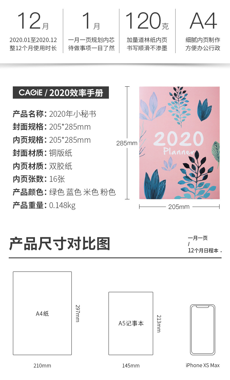 商品名称:创意文具花间集 A4效率手册办公小秘书记事本子创意个性笔记本子 订制礼品笔记本