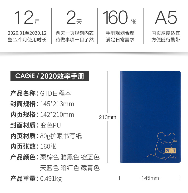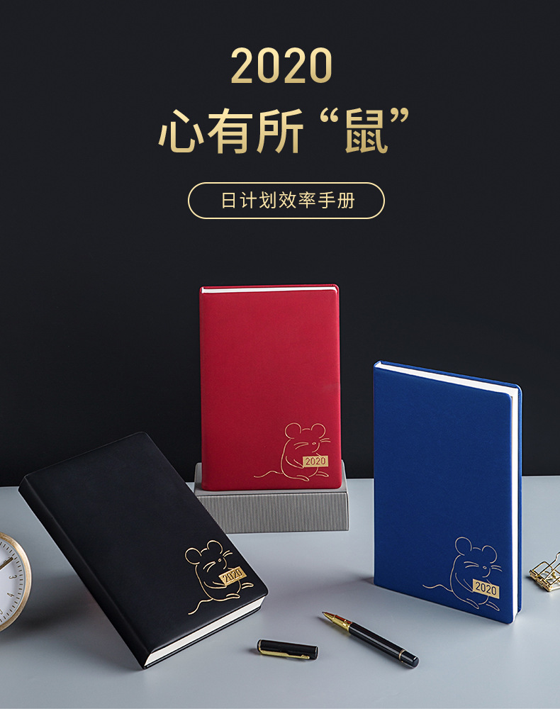 20年鼠年先行 简约商务时尚效率手册笔记本生肖鼠日程本A5可定制logo 商务笔记本定制