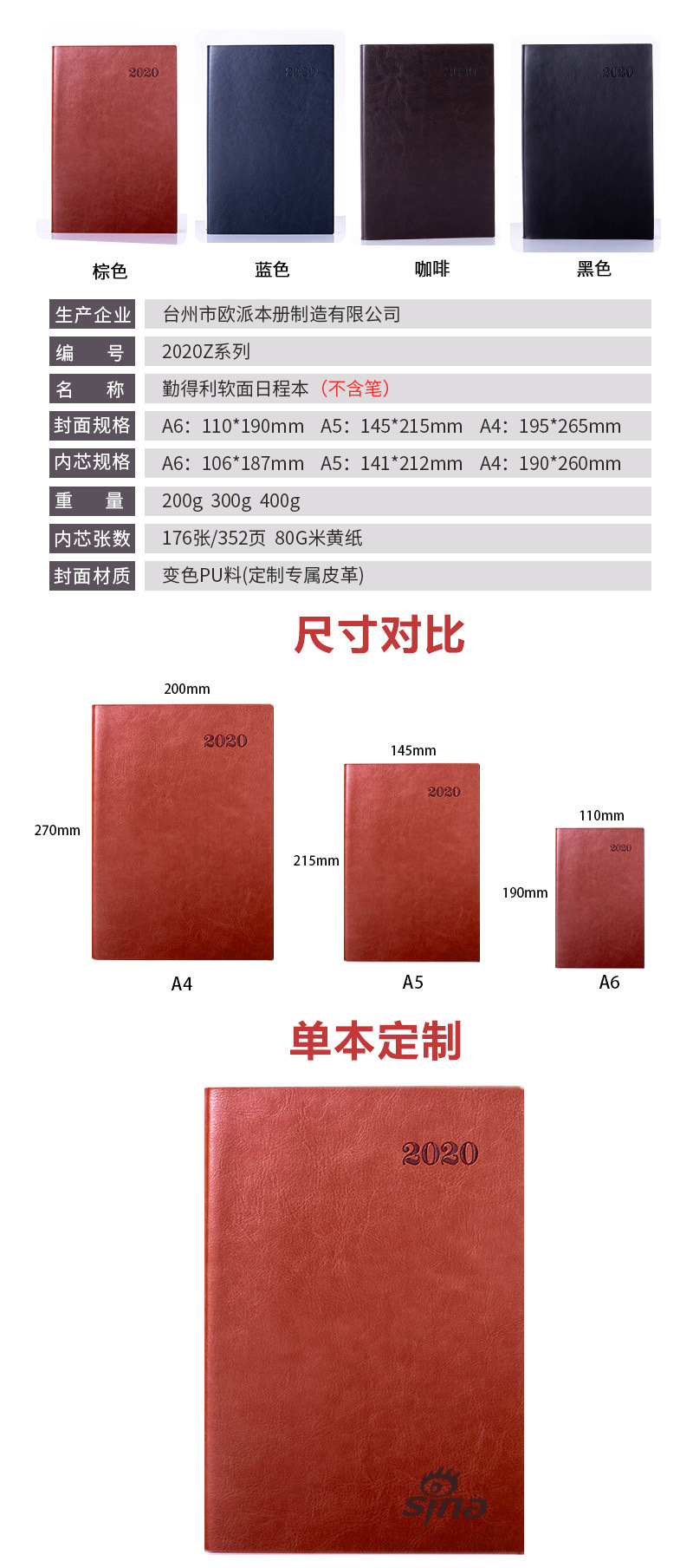 商品名称:2020年历记事本日程本效率手册 耐脏耐用软皮计划本 企业活动可定制