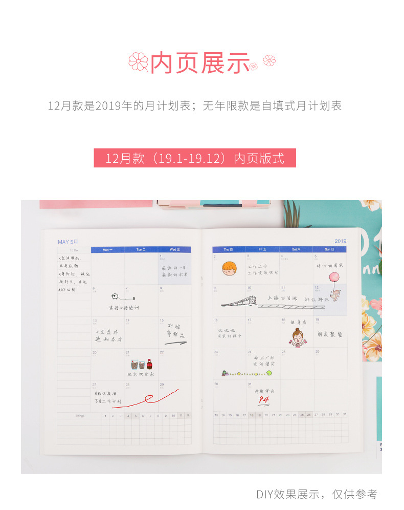 商品名称:无年限款效率本册 A4创意小清新办公记事本 个性笔记本 自填式月计划本