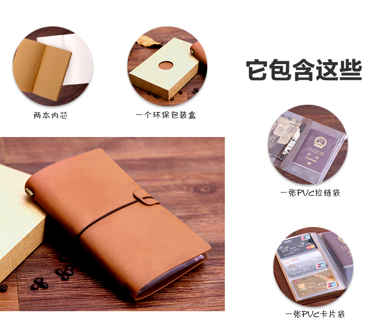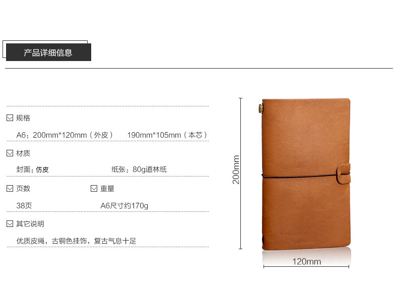 商品名称:A6复古手账本 创意办公记事本 PU笔记本定制