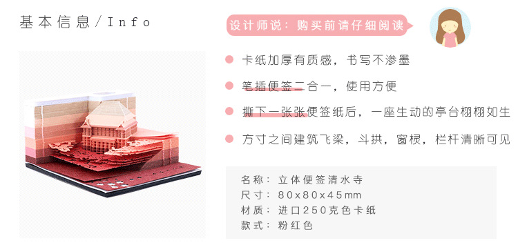商品名称:【日本清水寺】3D立体便签本 立体景观可撕便签 创意年会礼品
