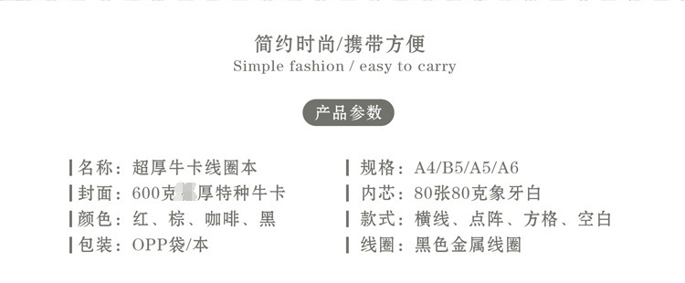 商品名称:纯色牛卡纸封面线圈笔记本 商务笔记本礼品定制
