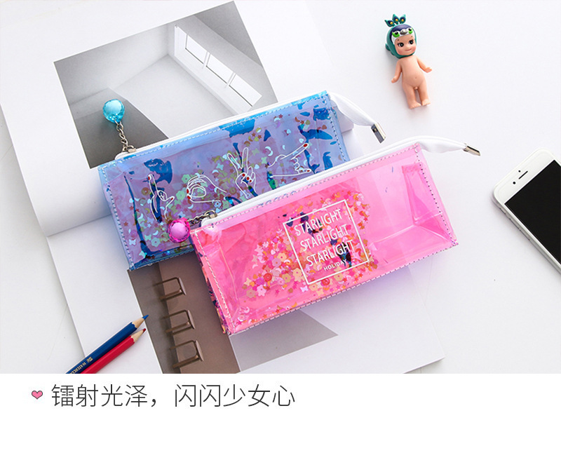 商品名称:创意炫酷镭射透明亮片流沙反光笔袋文具袋少女心铅笔袋学生袋 学生奖品 促销礼品