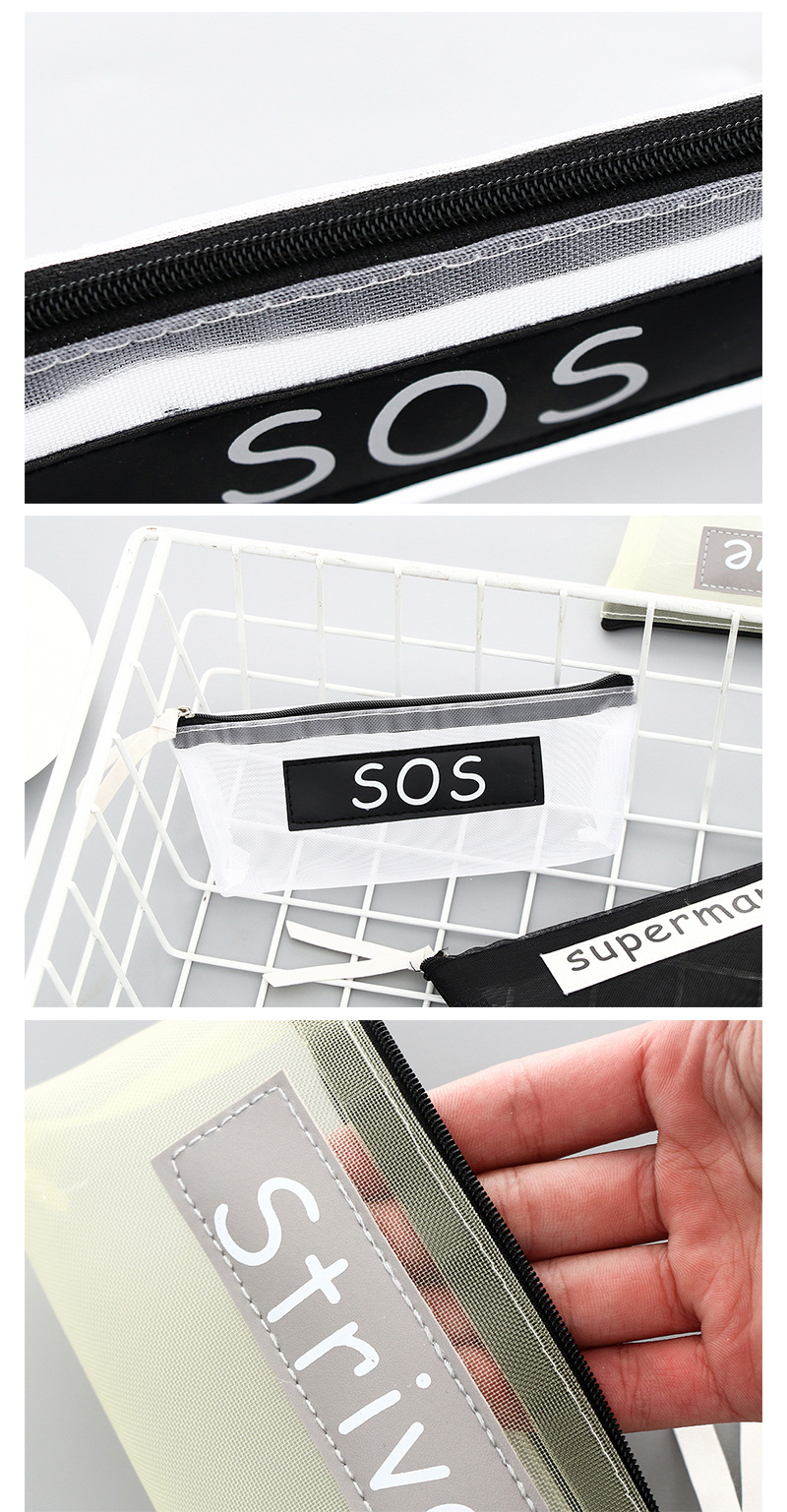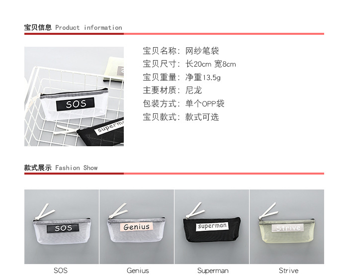 商品名称:简约透明网纱笔袋男女学生拉链文具袋创意大容量文具铅笔盒收纳袋 促销小礼品