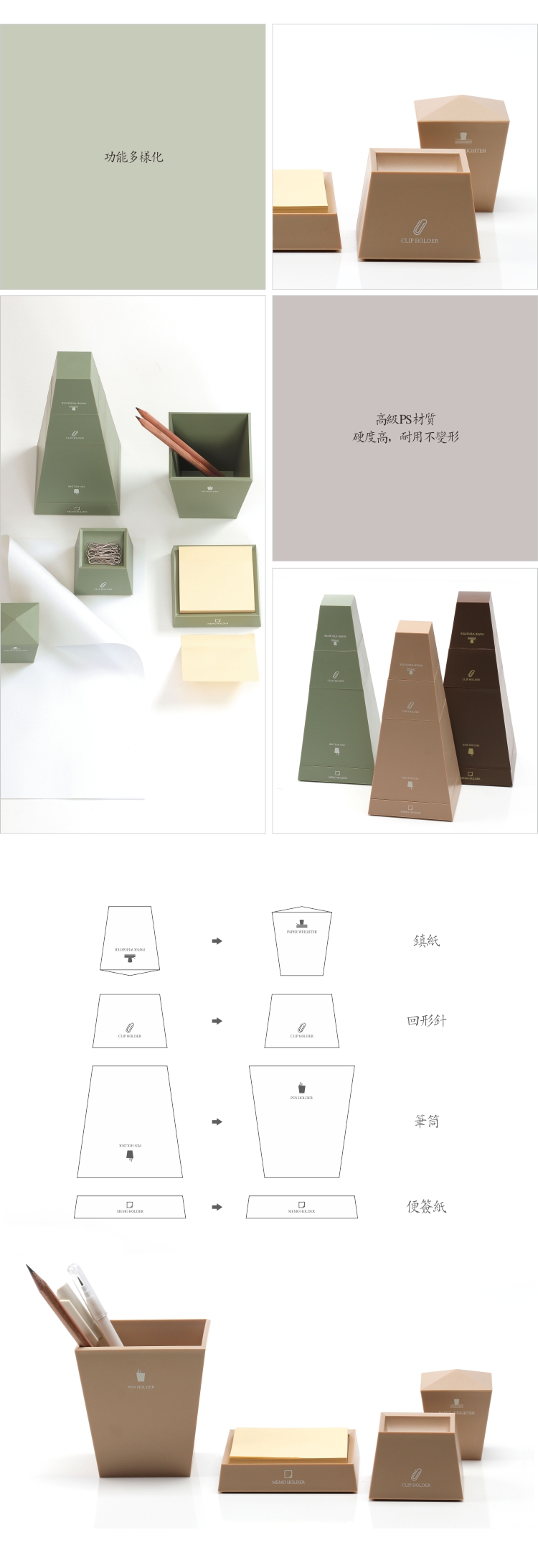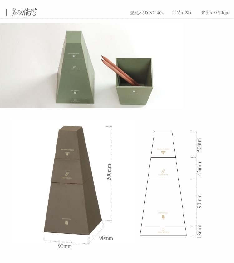 商品名称:【多功能塔】创意四合一摆件办公套装 学习用品组合(镇纸器+回形针座+笔筒+便利贴纸座)