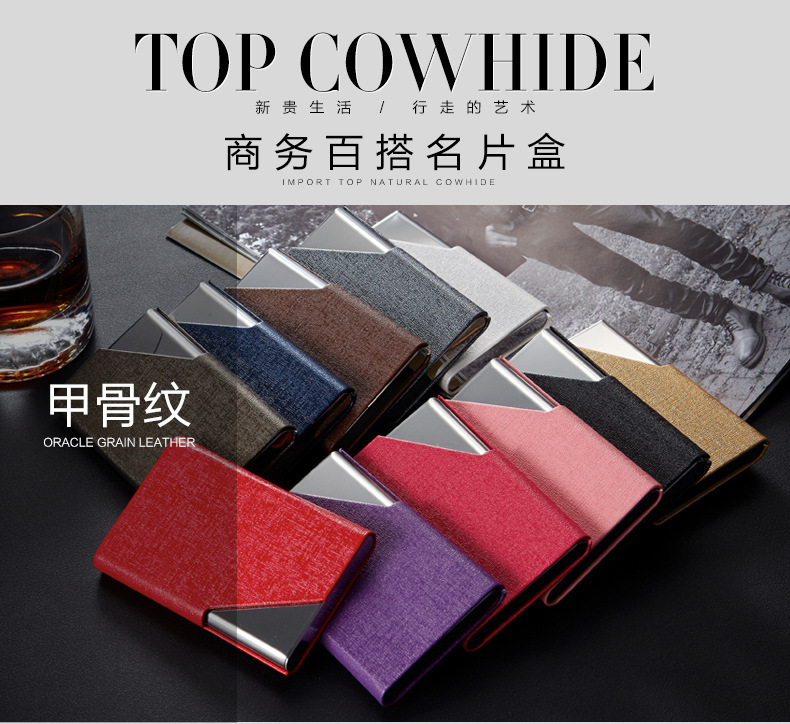 商品名称:商务百搭名片盒 甲骨文PU变色皮名片夹 商务礼品定制