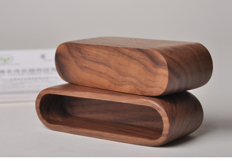 商务木质名片座 桌面收纳便签盒 实木名片盒 - 黑胡桃 银行小礼品有哪些 公司客户礼品