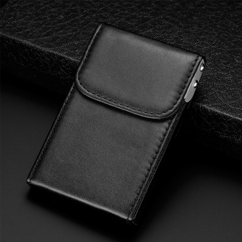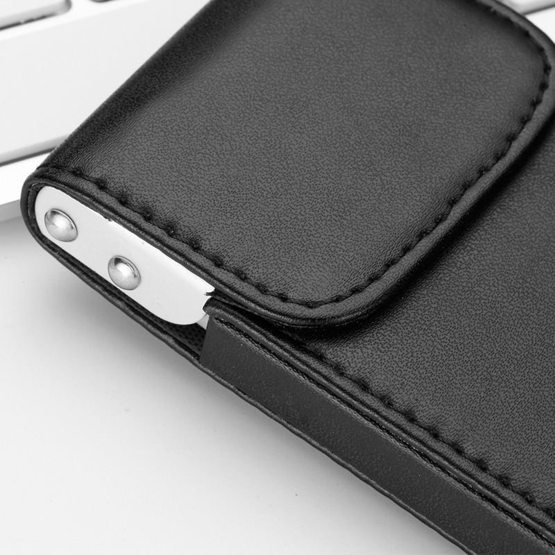 商品名称:纯黑经典翻盖竖式PU皮名片盒 公司周年庆礼品定制