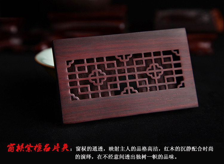 商品名称:窗棂紫檀木红木名片夹 商务馈赠礼品公司开业庆典纪念收藏礼品定制