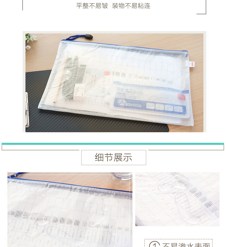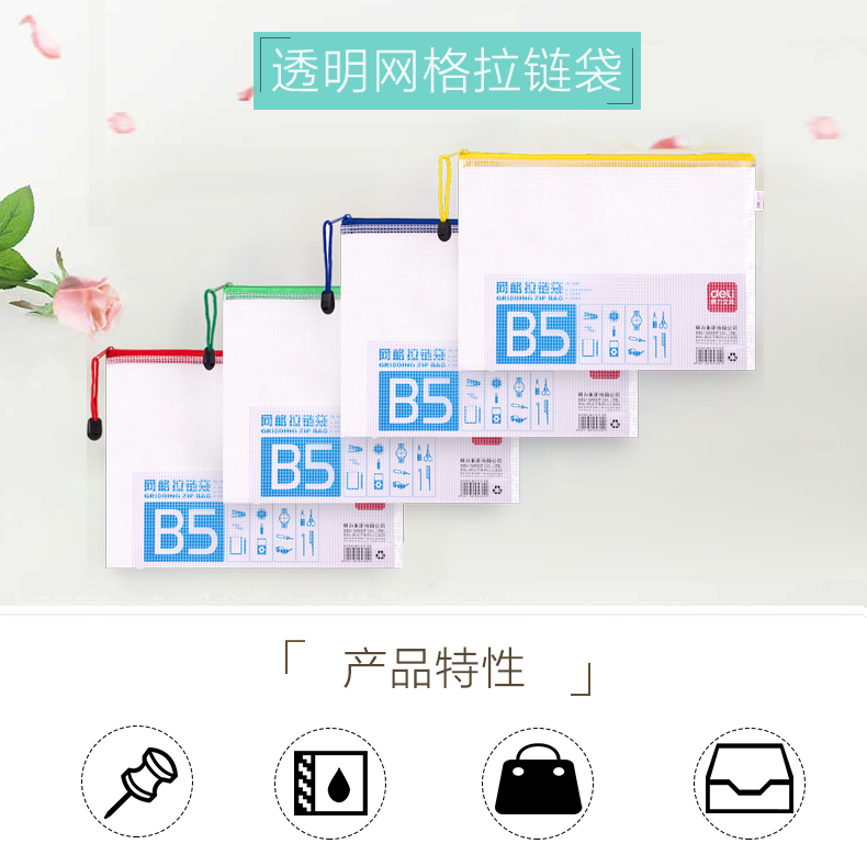 商品名称:得力(deli)基本网格款文件袋 拉链文件袋 定制广告小礼品1元内