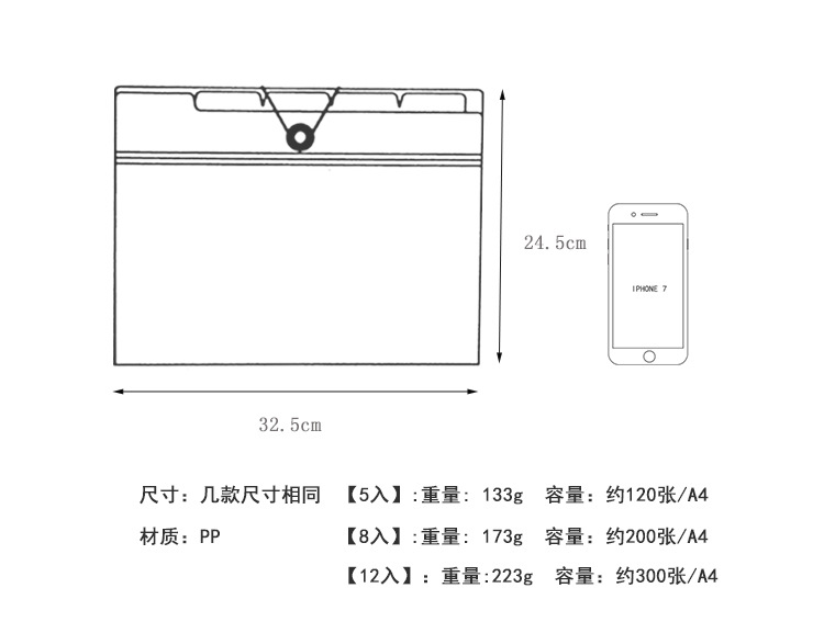 商品名称:8入简约搭扣a4风琴文件夹多层 学生用透明试卷袋 多功能办公资料册 办公礼品