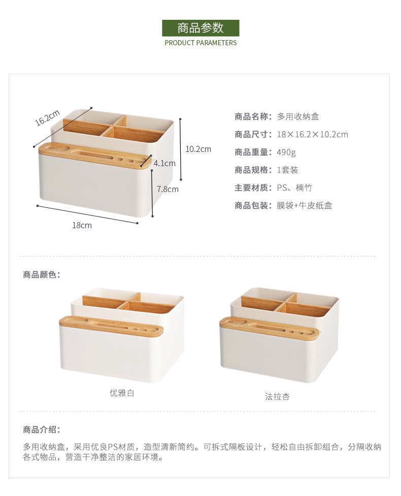 商品名称:纳川可拆卸分隔桌面多用收纳盒--法拉杏(AO265)