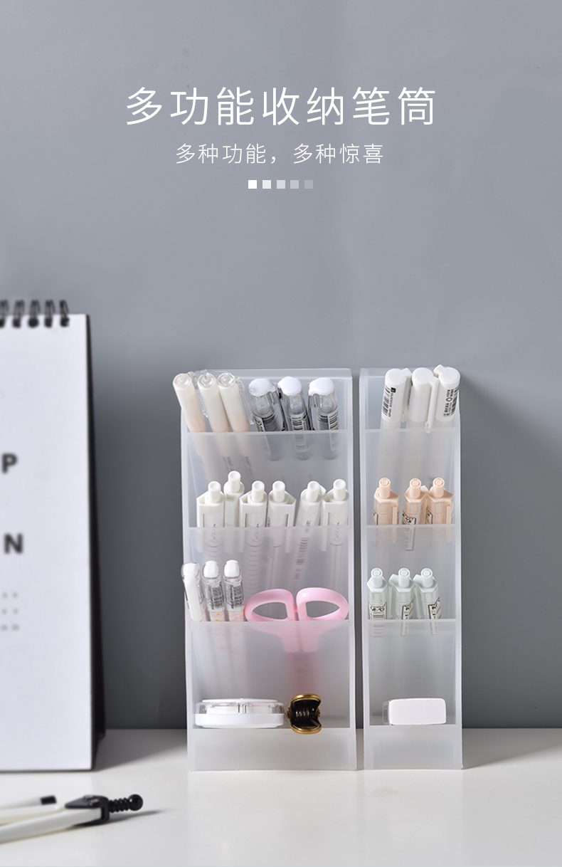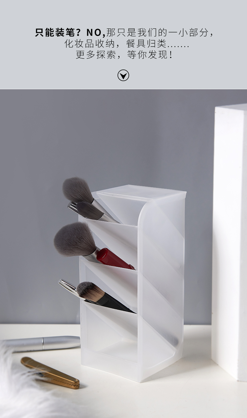 商品名称:桌面横竖两用4格文具收纳盒 分格笔筒 化妆品收纳盒--透明白大号加宽培训小礼品有哪些