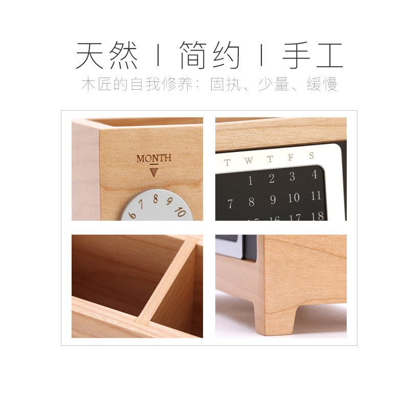 商品名称:创意木质大容量笔筒(胡桃木) 多功能万年历桌面收纳盒 办公用品笔座 生活创意礼品