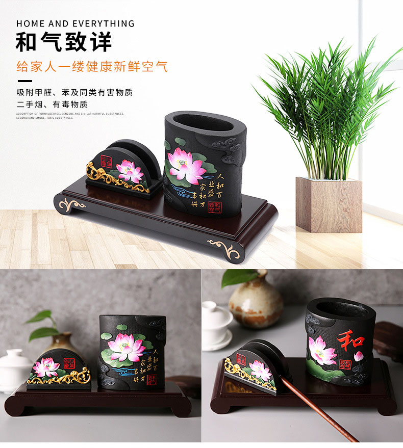 商品名称:和气致祥炭雕笔筒名片盒套装摆件 炭雕工艺品 商务礼品定制