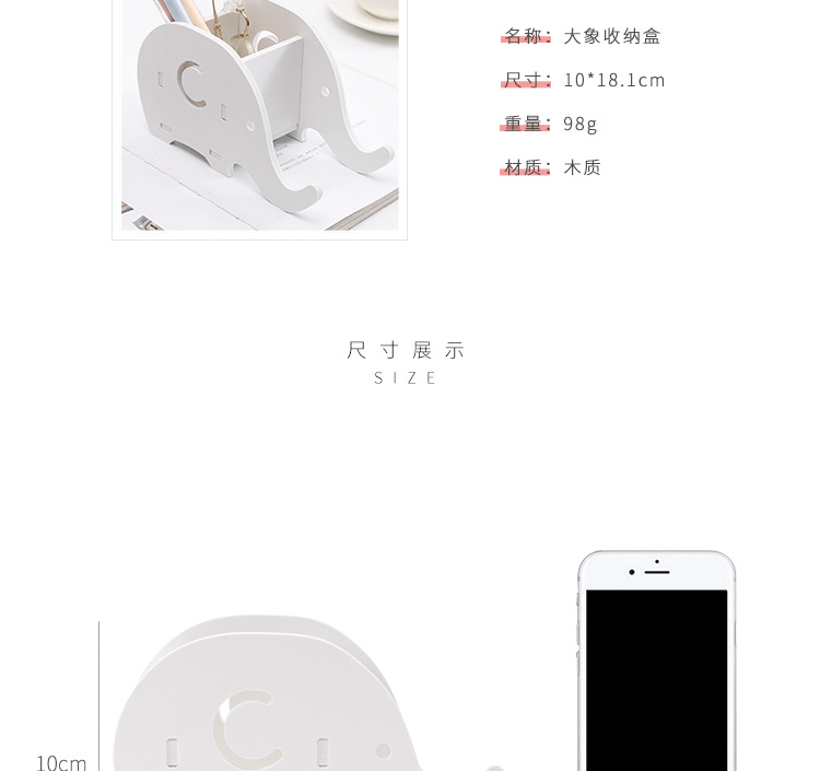 商品名称:大象手机支架收纳盒 简约木质笔筒 创意广告礼品