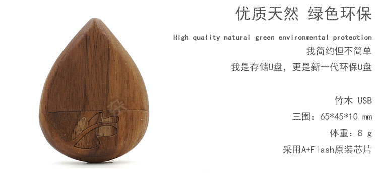商品名称:U盘定制 创意竹木U盘 个性水滴造型优盘 一般送什么给客户比较好