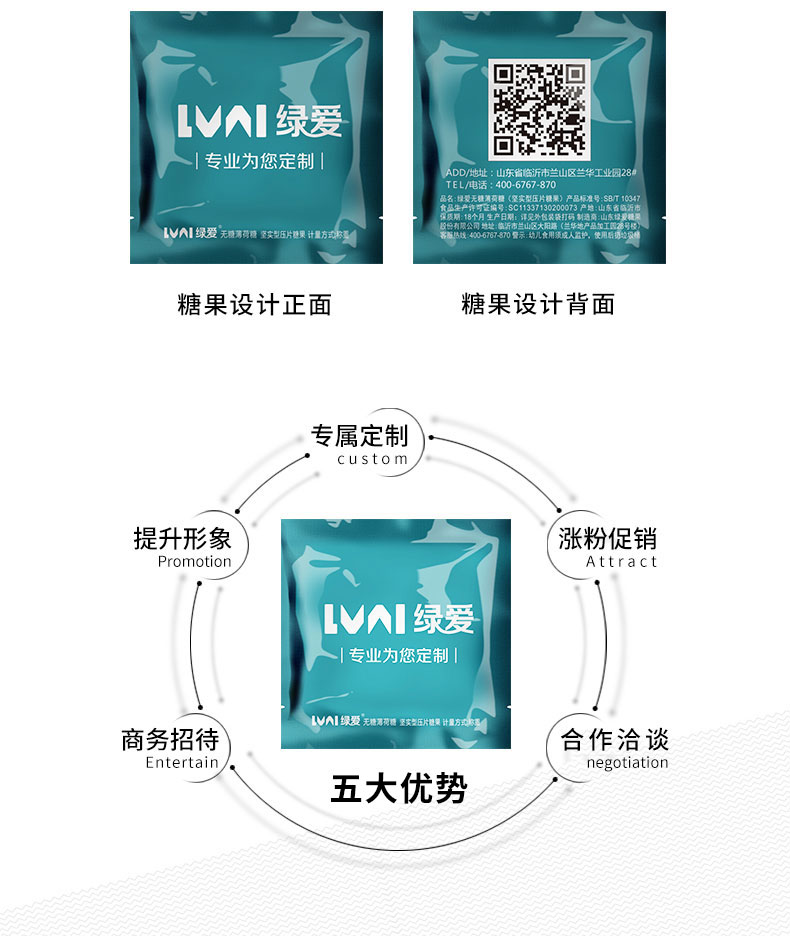 商品名称:【企业薄荷糖】正方形四边封创意定制logo广告糖果招待宣传用薄荷糖订做 礼品定制