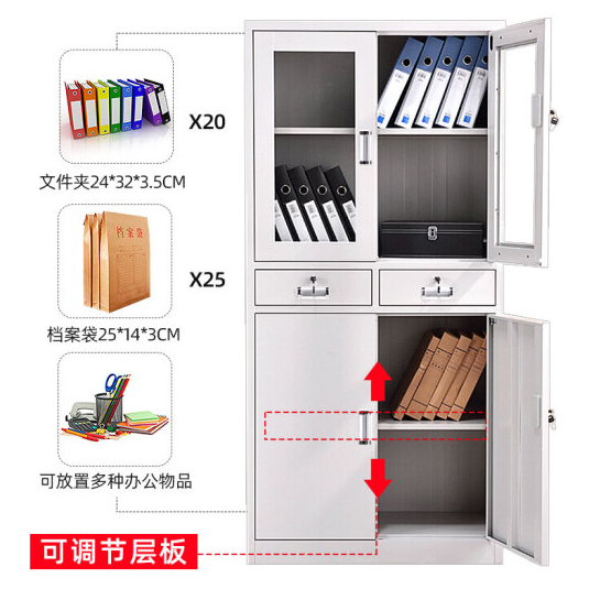 双节档案柜组合矮柜钢制储物柜A4档案盒文件柜铁皮柜资料柜财务办公柜分五节二节柜常规板材