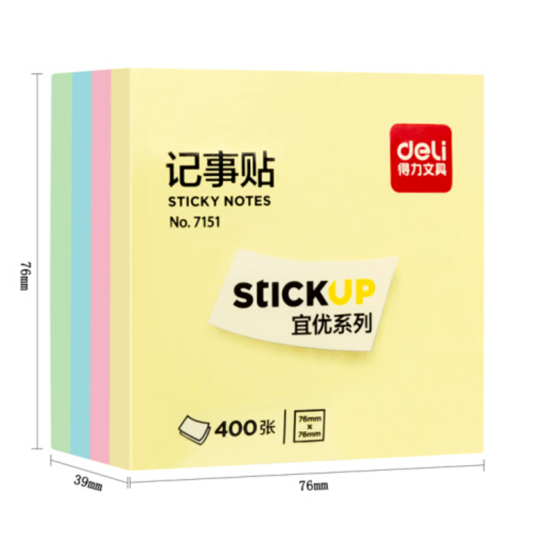 商品名称:得力(deli)400页4色简约便利贴便签纸 76*76mm便签本N次贴记事贴办公用品