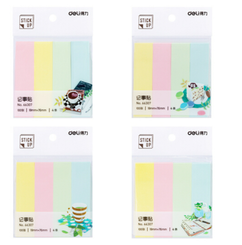 得力(deli)12本4色分条便利贴 76*19mm便签纸记事贴N次贴