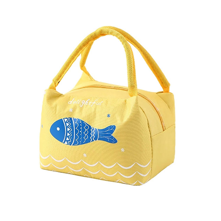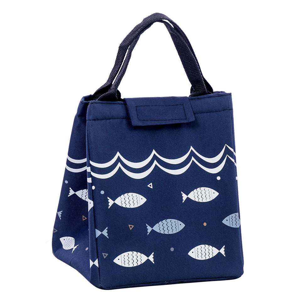 棉麻小鱼图案手提便当包 表面防水牢固绑带 保鲜保温袋 促销小赠品
