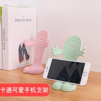 小麦秸秆可爱拥抱笑脸手机支架 平板电脑支架--浅绿色