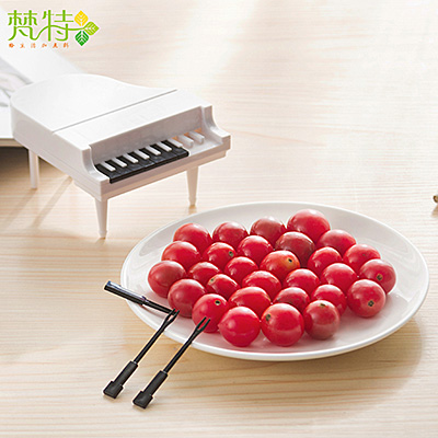 白色钢琴造型琴键水果叉--9支叉