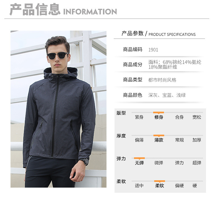 商品名称:2019户外风衣男透气弹力速干风衣运动外套休闲单层冲锋衣定制 团体衣服定制