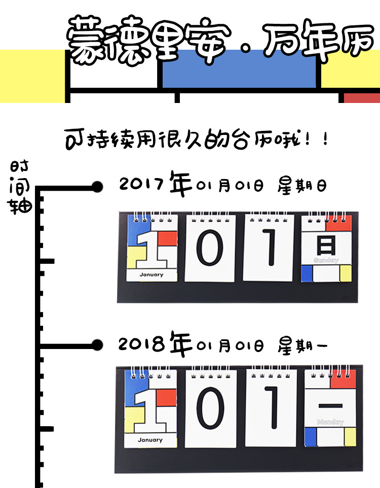 商品名称:蒙特里安创意万年历 办公台历定制 年会抽奖奖品
