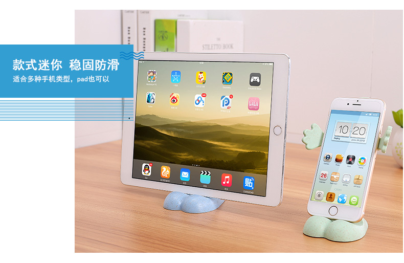 商品名称:小麦秸秆可爱拥抱笑脸手机支架 平板电脑支架--浅绿色