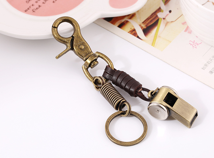 商品名称:合金口哨 纯手工牛皮编织复古金属钥匙扣 比较个性的小礼品 儿童节学生创意礼品