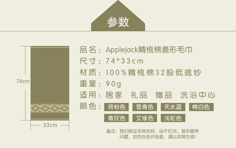 商品名称:北欧风AppleJack 全棉100%精梳菱形缎档毛巾礼品 高档促销毛巾礼品
