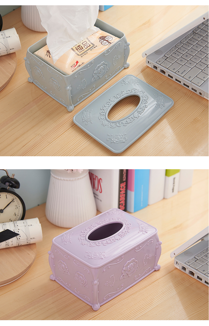 商品名称:欧式玫瑰雕花纸巾收纳盒--北欧粉
