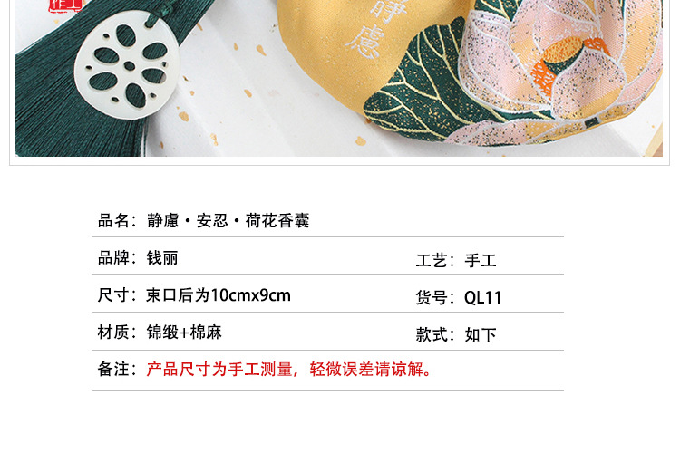 商品名称:纯手工荷花艾叶香囊 流苏挂饰传统香包 创意端午礼品
