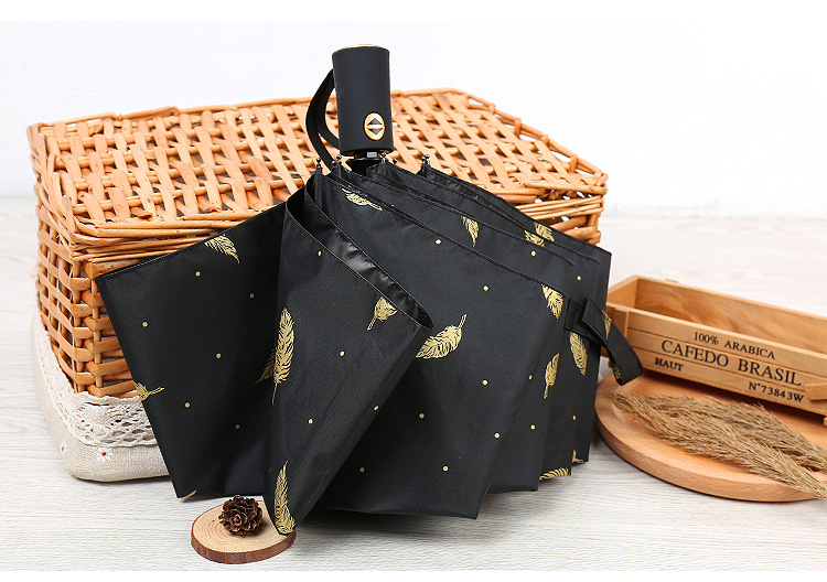 个性创意折叠羽毛伞 全自动黑胶防晒伞 防紫外线太阳伞 问题比赛 奖品