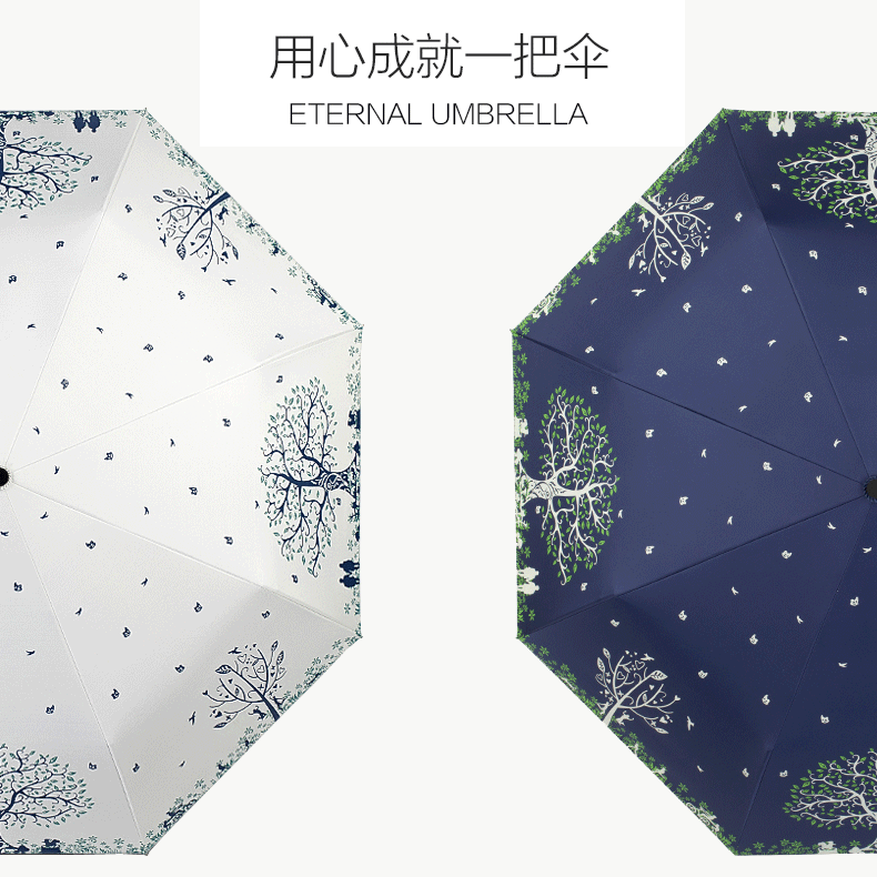 商品名称:三折伞超轻幸福树太阳伞黑胶防晒伞 什么礼品好