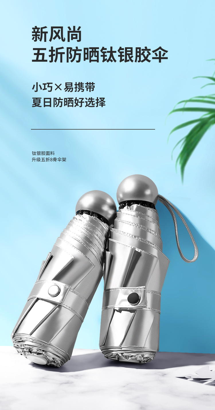 超轻五折防晒钛银胶晴雨伞八骨伞架抗风雨伞 送客户实用礼品