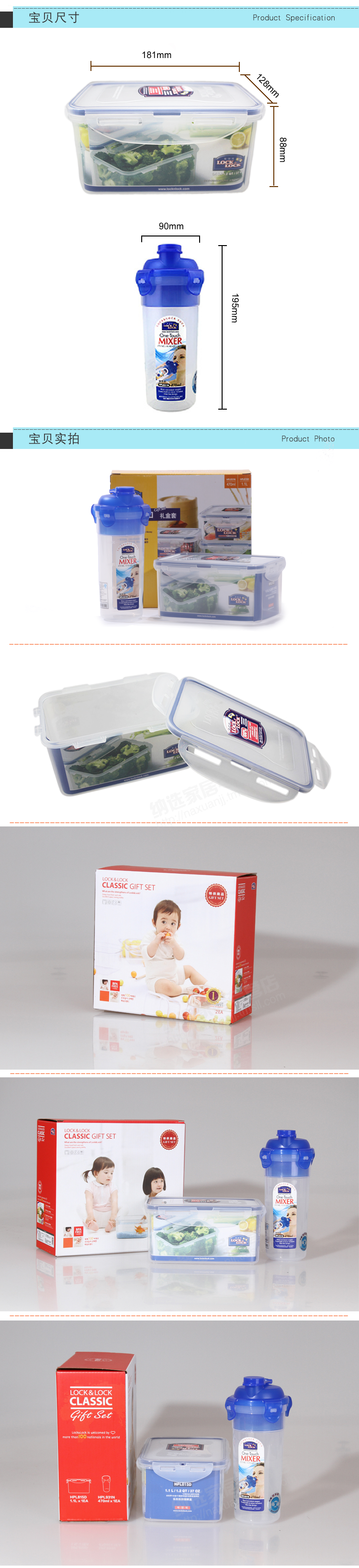 商品名称:乐扣乐扣(Lock&Lock) 保鲜盒水杯套装 塑料密封饭盒收纳盒HPL931NS001