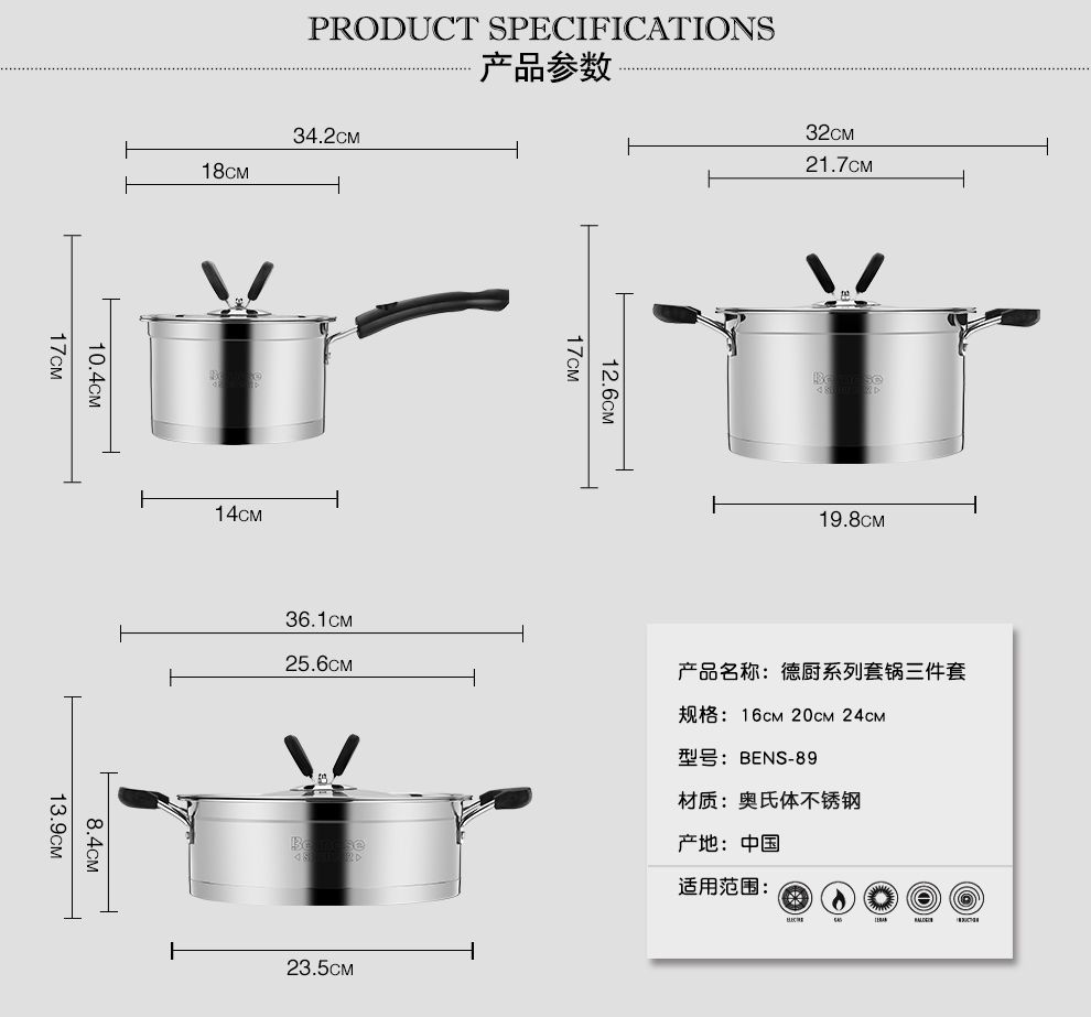 商品名称:伯尔尼斯 德厨套锅三件套 奶锅汤锅煎锅 促销活动礼品