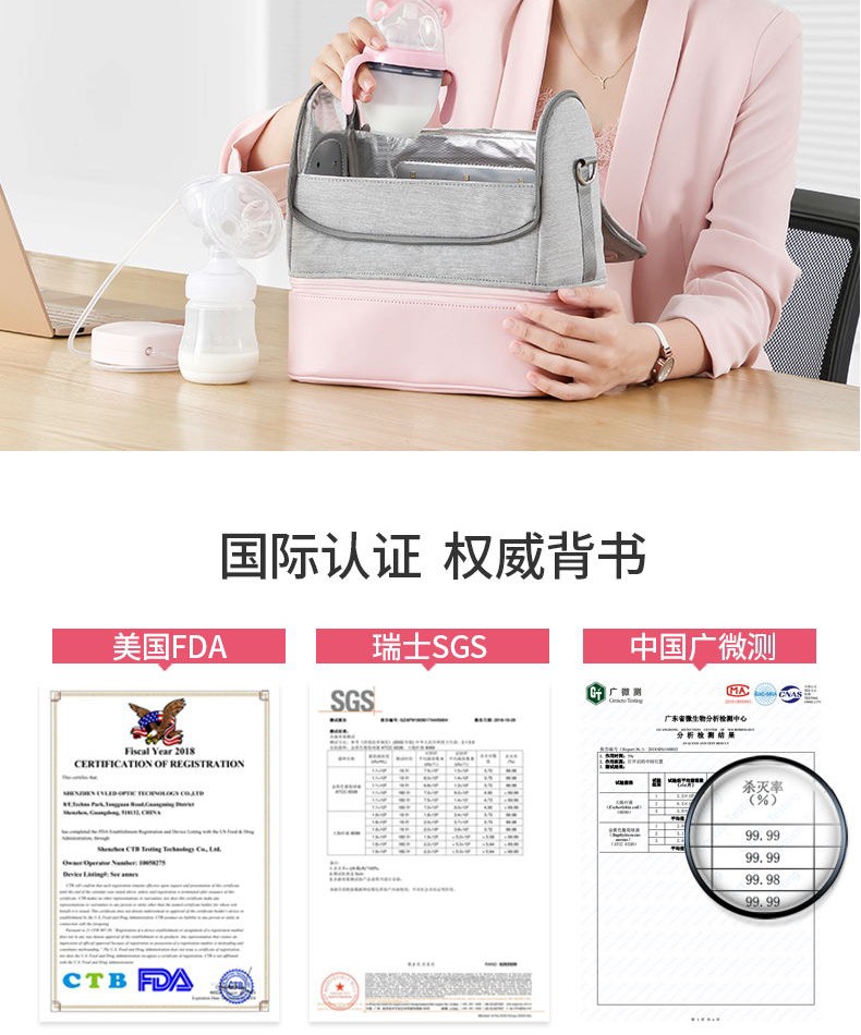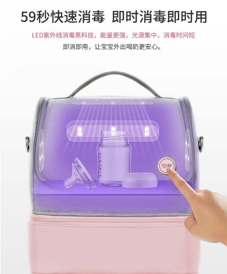 59秒 可以背着走的“消毒柜”LED紫外线消毒妈咪包消毒储奶收纳三合一 500元左右礼品