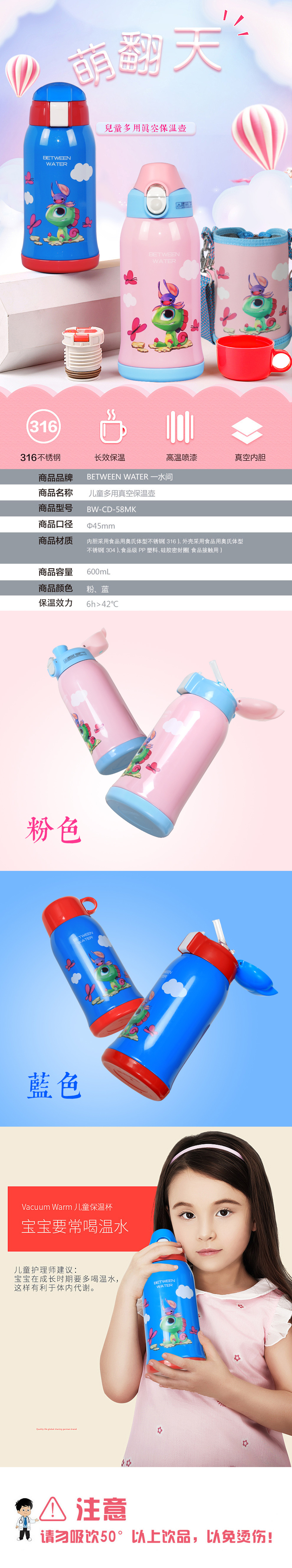 商品名称:儿童多用真空保温壶 大容量外出便携挂绳杯套保温杯 儿童礼品