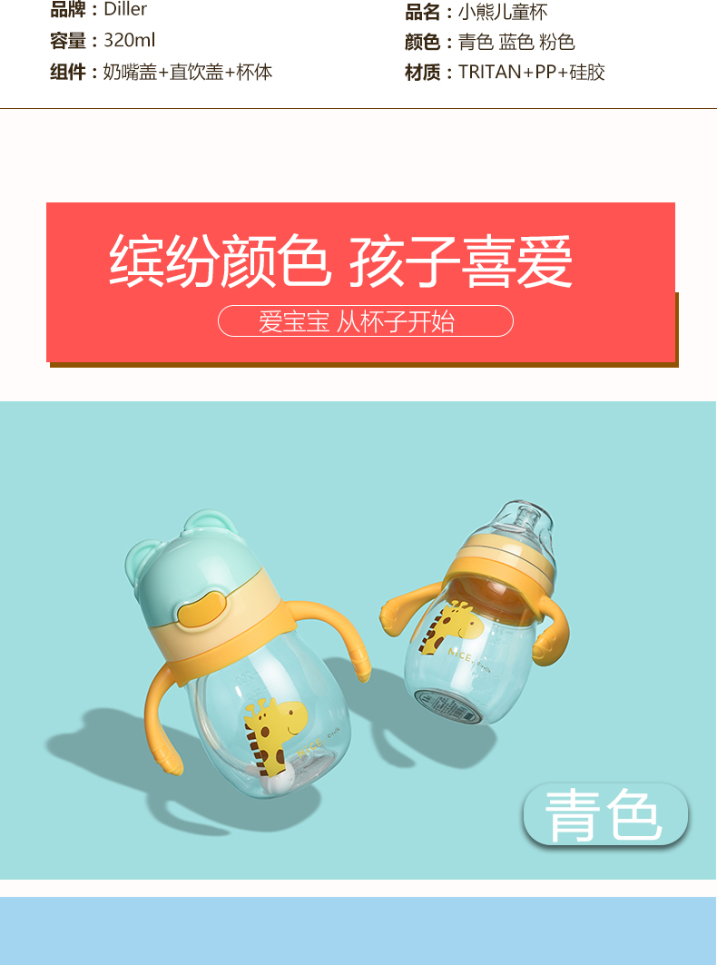 商品名称:可爱卡通两用婴儿水杯 带手柄重力球学饮杯 宝宝吸管杯 婴儿奶瓶320ML 母婴活动礼品