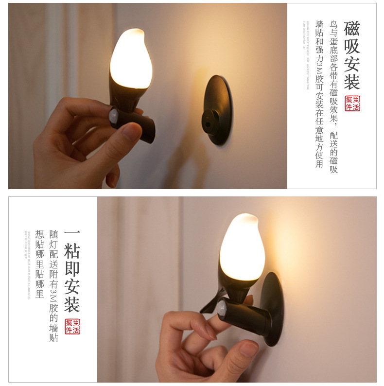 喜上梢智能感应灯置物收纳摆件架光控小鸟树枝磁吸小夜灯 高级礼品