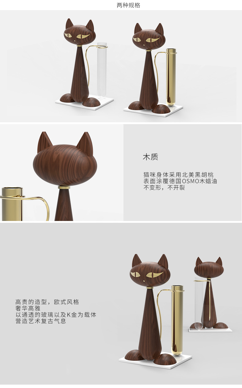 商品名称:MUSOR 贵妇猫插花器 猫咪花瓶实木干花插花家居摆件花瓶客厅装饰 工艺礼品摆件